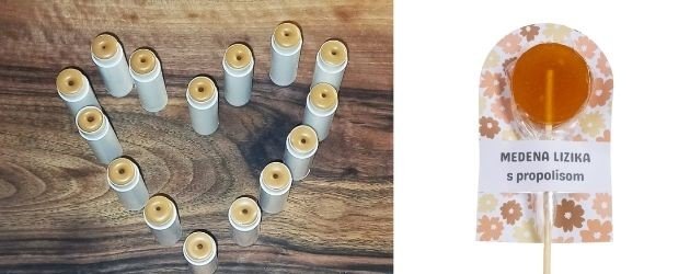 - Medene lizike s propolisom (ker propolis pomaga pri lajšanju bolečin v grlu, aftah in drugih težavah v ustni votlini)