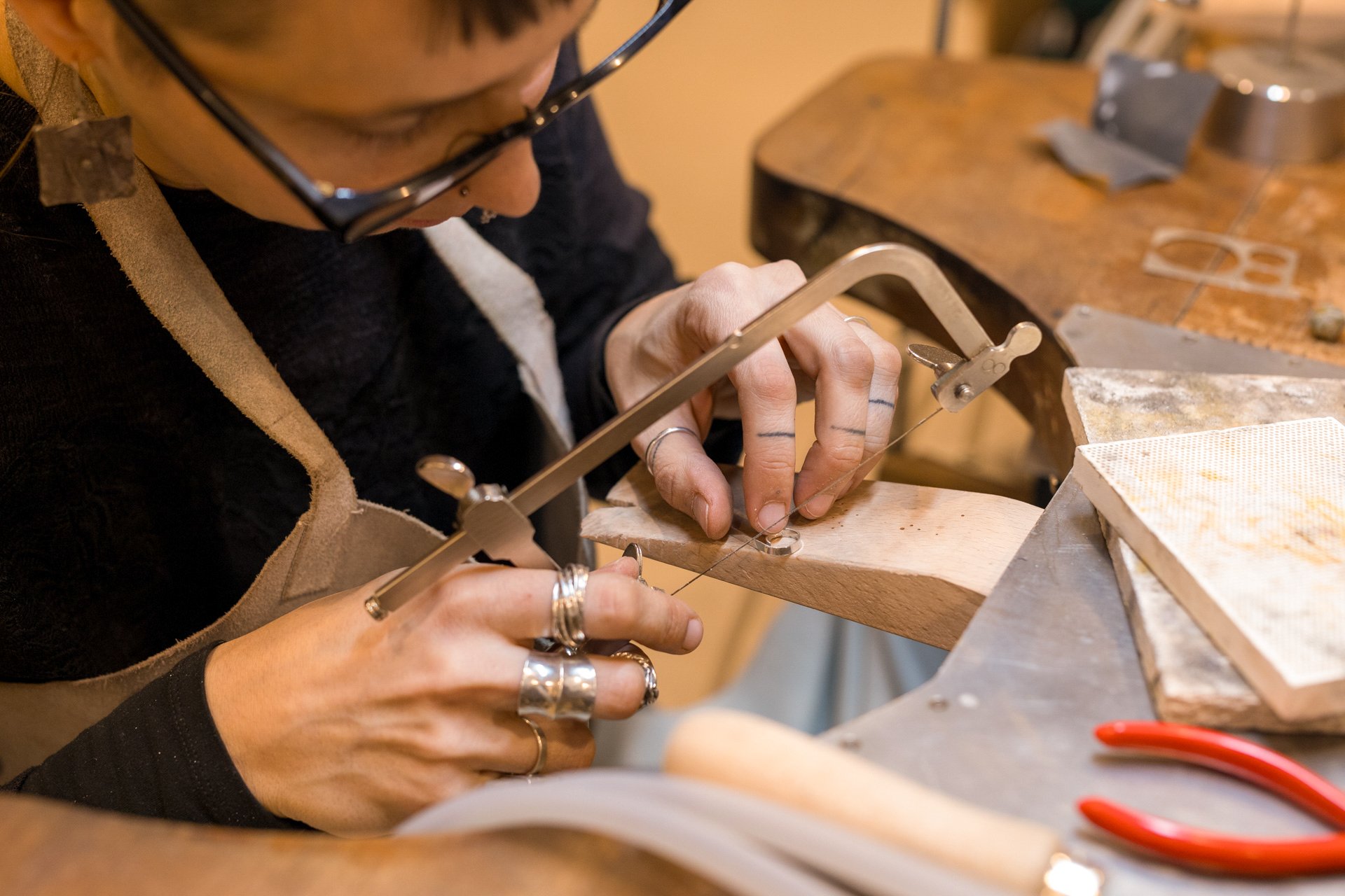 Dalija Sega is head of the Jewellery Lab. She is a contemporary jewellery designer whose work is rooted in a sculptural approach. Her pieces function as small-scale sculptural objects, often crafted in silver or gold and inspired by nature, organic structures and material exploration. She studied sculpture at the Academy of Fine Arts and Design in Ljubljana and today works as Head of the Jewellery Lab at Center Rog, where she mentors emerging designers and leads workshops in contemporary jewellery making.